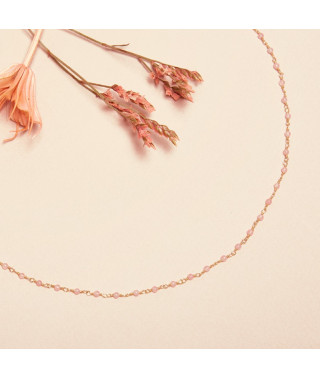 Le collier Inde est un bijou élégant et raffiné, inspiré de la nature. Il est composé d'une chaîne Inde fabriquée artisanalement avec des pierres facettés en quartz couleur framboise, la base est en laiton dorée à...