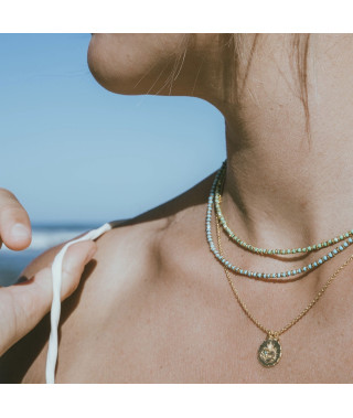 Nouvel intemporel de la marque, le thème Gaia s'inscrit dans la continuité de notre collection Inde, et met à l'honneur les pierres, pour un esprit chic et bohême. Collier Jaipur, des petites perles en pierres...