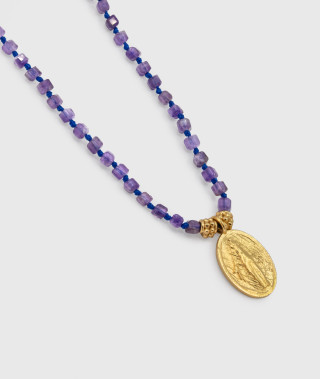 Le collier Gloria est une pièce pleine de charme et de détails. Une chaîne fine en laiton doré à l’or fin 18 carats (1 micron) qui accueille plusieurs pendentifs délicats : une petite médaille sertie de zircons...