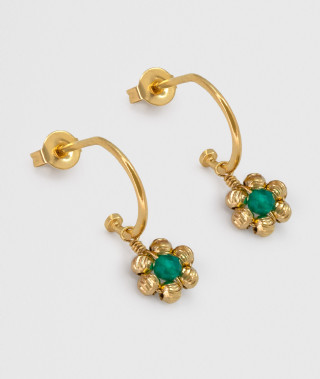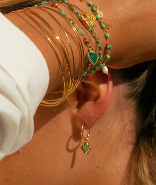Les Boucles Bloom Emeraude mettent en lumière l’intensité d’un vert profond et lumineux. La pierre centrale, aux nuances émeraude, est sublimée par un entourage de perles dorées dessinant une fleur précieuse, symbole...