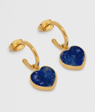 Boucles d’oreilles créoles chaines, un cercle en base laiton doré à l’or fin 18 carats et 1 micron, une jolie pierre au centre en lapis lazuli, finies par 3 chaines de longueurs différentes. Diamètre: 3 cm
