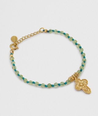 Le bracelet Jaipur est un bijou bohème chic qui saura sublimer votre poignet. Son mélange unique de pierres Crysopear aux nuances de bleu et de vert et de petits écrous en laiton doré à l'or fin 18 carats 1 micron lui...