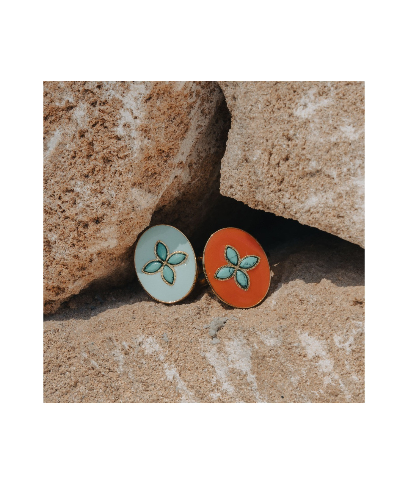 Flashback sur les années 80, une gamme de couleurs vitaminées, un vent de fraicheur et de joie pour un été ensoleillé. Bague Flower, un anneau en base laiton doré à l’or fin 18 carats 1 micron avec une médaille...