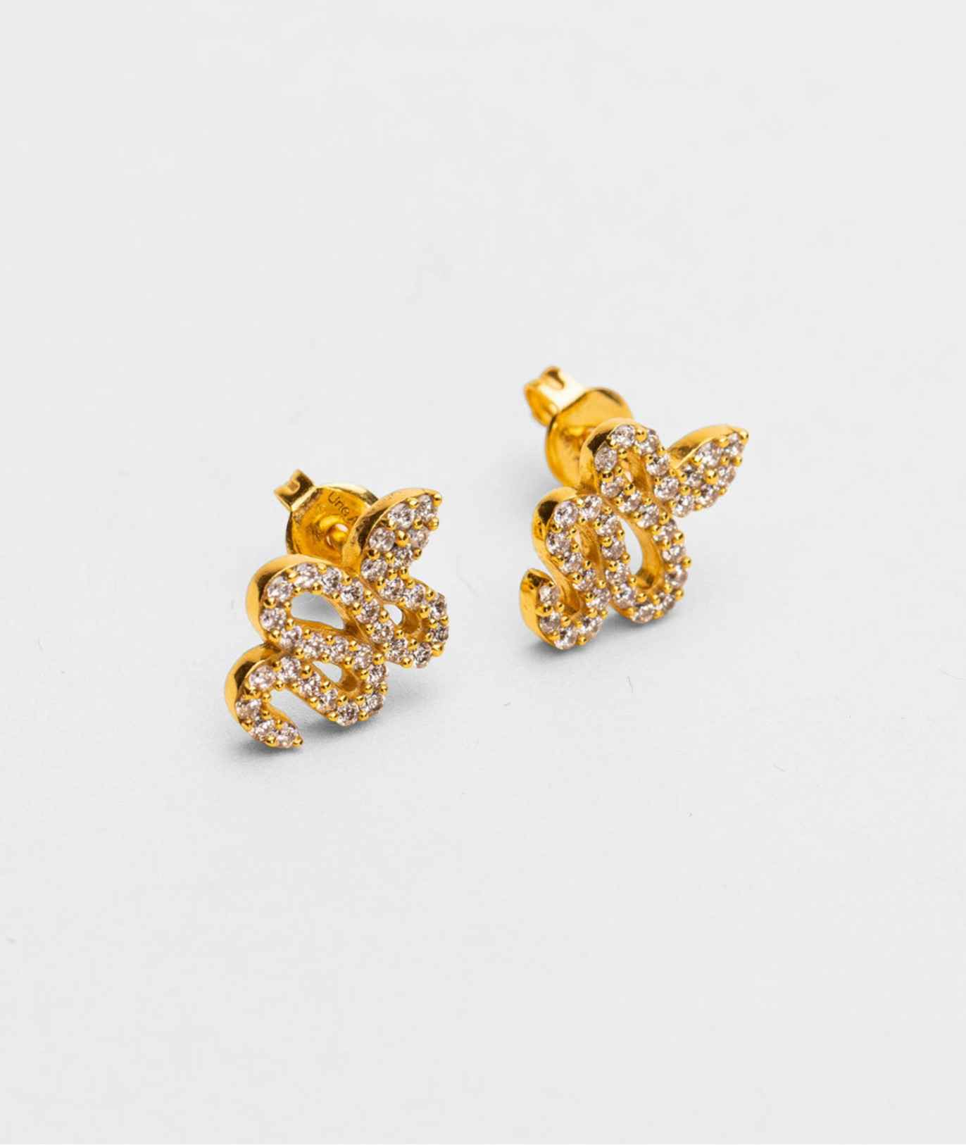 Boucles d'oreilles créoles sur une base laiton dorée à l’or fin 18 carats 1 micron, en forme de serpent avec des zircons blancs incrustés.
