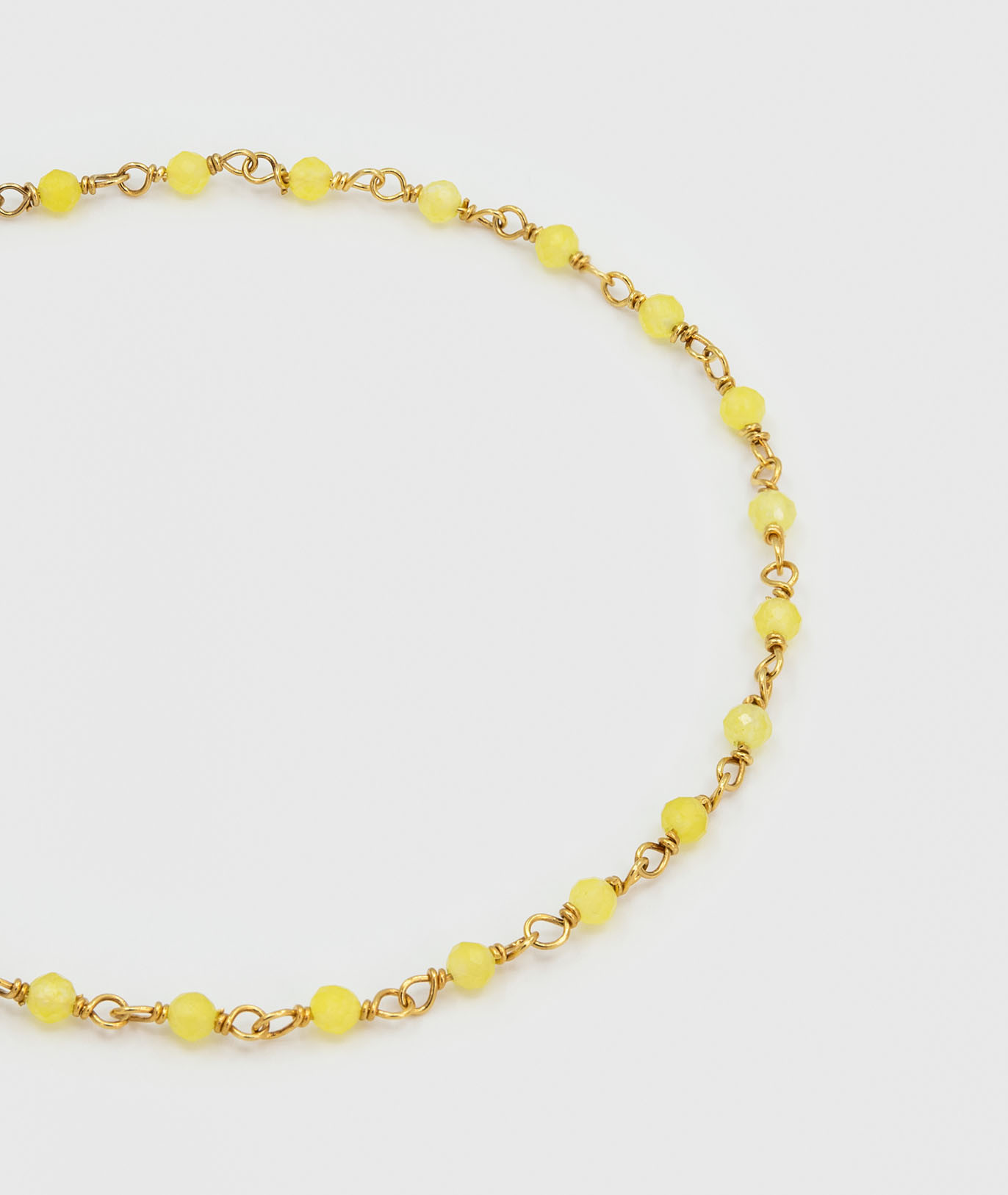 Le bracelet Inde est un bijou raffiné et élégant, composé d'une chaîne faite à la main en base laiton dorée à l'or fin 18 carats 1 micron et ornée de pierres semi-précieuses d'Aragonite. Sa couleur jaune se porte en toute saison et s'intègrera facilement à vos tenues du quotidien.