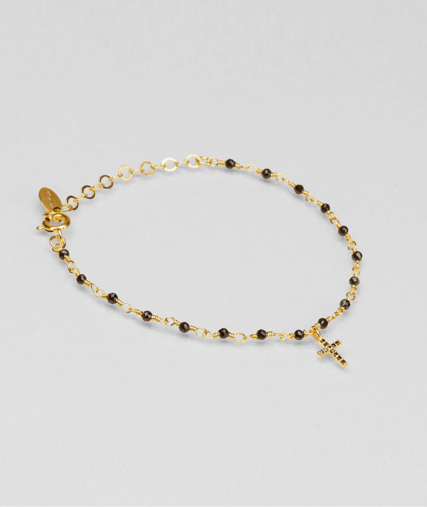 Le bracelet est également orné d'un petit pendentif croix d'un cm incrustée de zircons noirs. La croix est un symbole de foi et de protection, qui apporte une touche de profondeur au bijou, ce qui en fait un bijou idéal pour porter au quotidien.