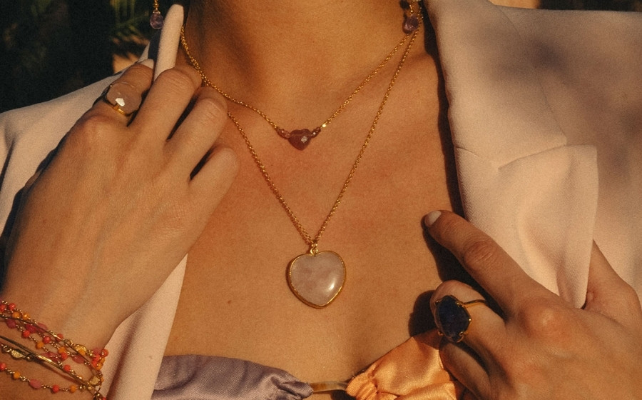 "Le collier Lia associe une fine chaîne dorée à l’or fin et un cœur taillé dans la pierre. Disponible en Cristal de roche pour sa clarté, en Tourmaline rose pour sa douceur, en Cornaline pour son énergie, et en Aventurine pour son équilibre, il se porte comme un bijou délicat et intemporel, à la fois moderne et symbolique."