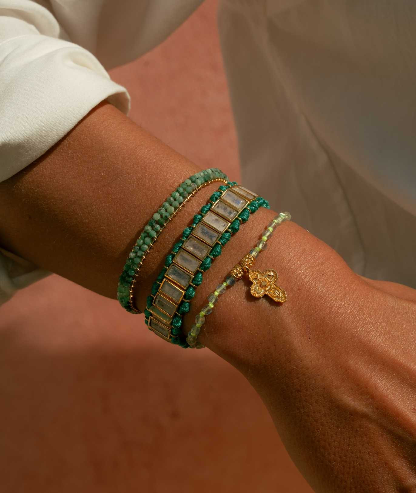 Toutes nos créations sont fabriquées, assemblées et façonnées à la main par des artisans dans nos ateliers. Les pierres que nous choisissons sont uniques, comme vous, c’est pourquoi elles peuvent présenter de légères variations de forme, de teintes, d’aspect, ou des inclusions naturelles.