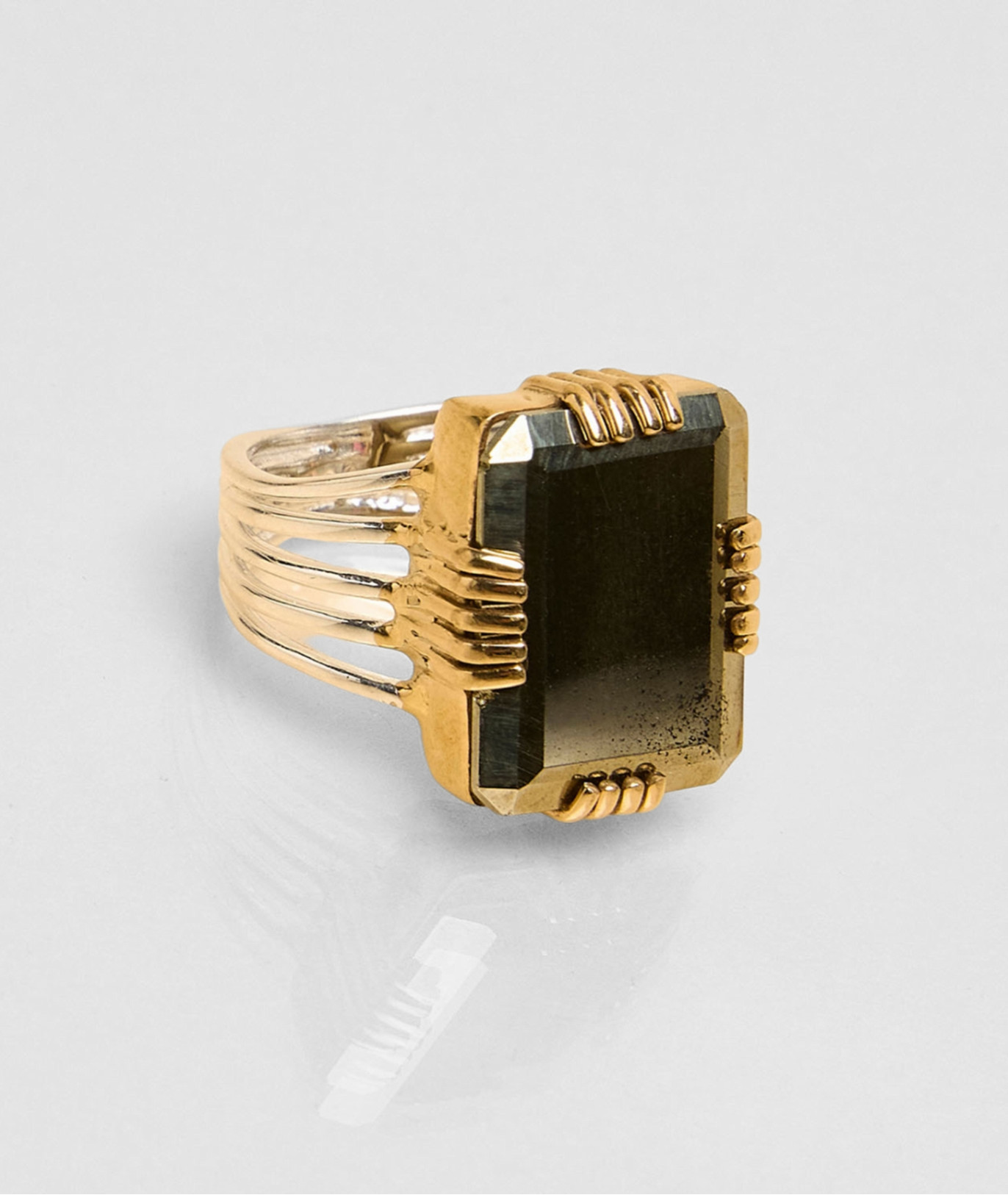 Collier Athena chaîne fine sur une base laiton doré à l'or fin 18 carats 1 micron, pendentif ajouré avec des zircons noirs baguettes et ronds, avec une très fine tige. Longueur : 45cm.